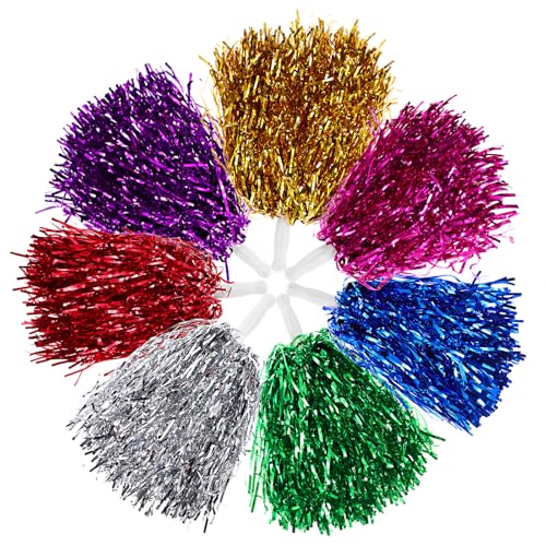 STOBOK 14Pcs Cheerleading Pom Poms Metallic Foil Cheerleader Pompoms with Handle for Sports Events Cheering Party Costume Accessories(Random Color)