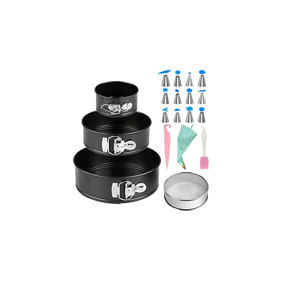 Cake Tin Set 3Pcs with 1Flour Sieve 1Demoulding Knife Decorating ToolNonstick Leakproof Cake PanSpringform Cake Baking TinsCheesecake TinChiffon Cake