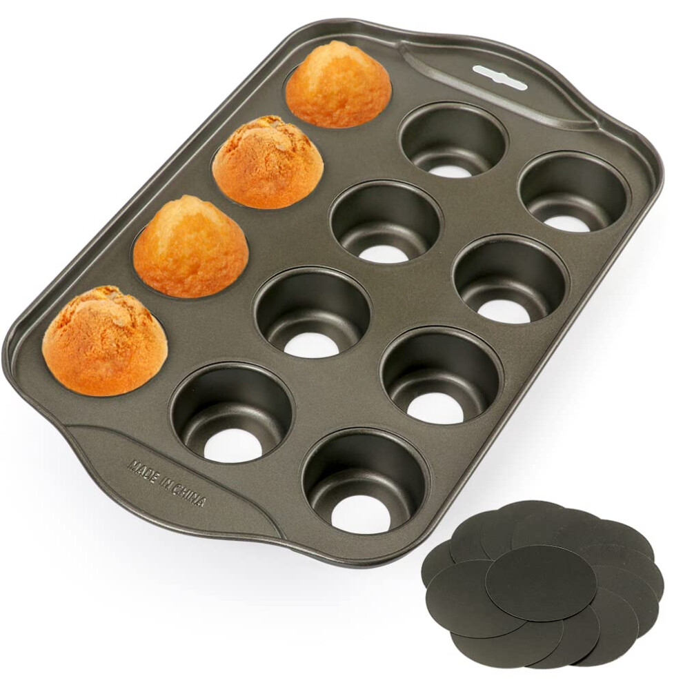 Nonstick Mini Muffin Pan Premium Carbon Steel Baking Tray 12 Cup Removable Bottom Cheesecake Tin For Oven, Non Toxic And Odorless High Temperature