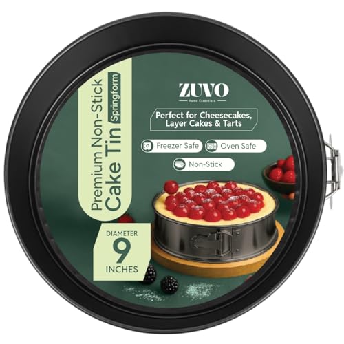 Zuvo Non-Stick Springform Cake Tin (22cm /9 inches) – Carbon Steel Round Baking Pan with Loose Base, Easy Clip Release, Oven, Fridge & Freezer Safe, Leak-Resistant Bakeware Cheesecake Tin