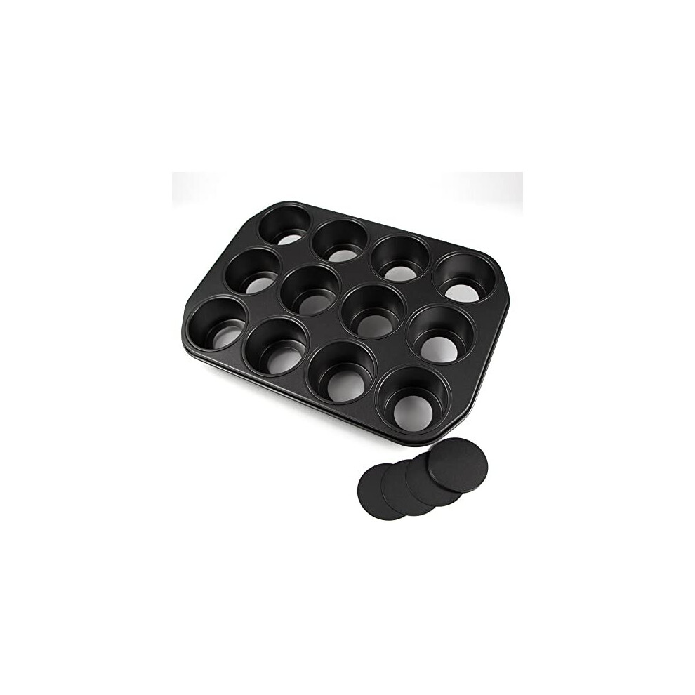 Pro Mini Cheesecake Tin - 12 Hole Mini Sandwich Tin - Heavy Gauge Loose Base Carbon Steel Large Muffin Tin - Toughened PFOA Free Professional