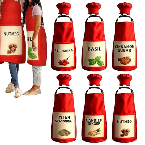 Seasoning Apron Costume - 6 Set, Lightweight Adjustable Chef Hats Aprons Comfortable Reusable | Spicee Costume Set for Men, Women, Family, Team Parties, Role Playing, Group Cosplay