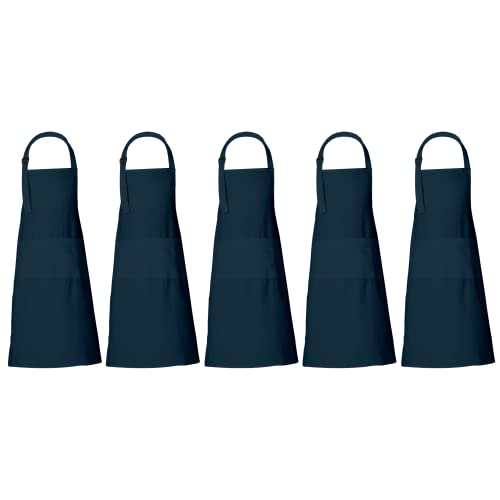 RAJRANG Dark Blue Cotton Chef Aprons for Men & Women – 35x27 Inch Cooking Aprons with Adjustable Neck Strap & 3 Pockets – Unisex Kitchen Apron, Pack of 5