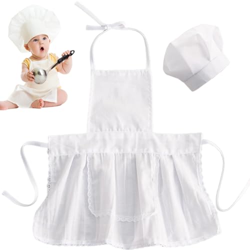Matissa & Dad Baby Apron and Chef Hat Infant Mini Chef Outfit Toddler White Baker Costume photoshoot props newborn photography outfit (Baby Girl, 3-12 Months)