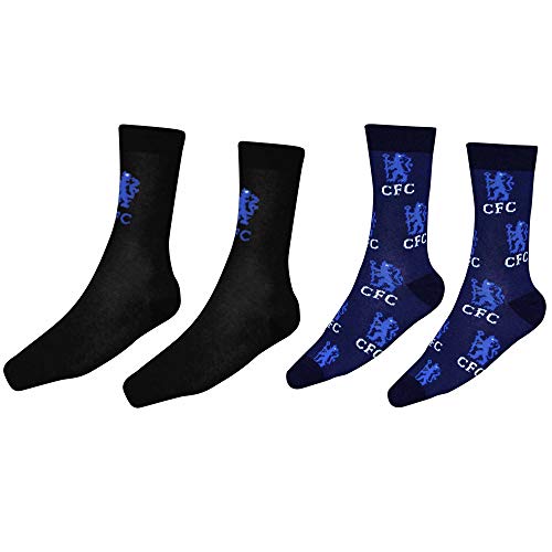 Official Twin Pack of Mens Chelsea Football Crest Dress Socks (Adults Size 8-11), Chelsea Mens Gift Socks, Chelsea Champions Socks Gift Set