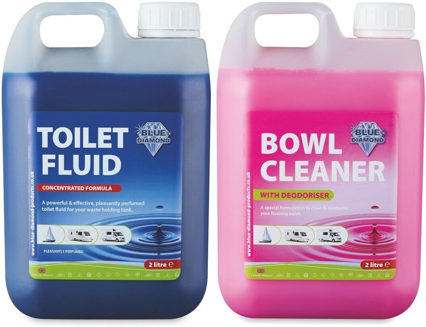 Blue Diamond Chemical Toilet Fluid Twin Pack 2L for Camping Caravan & Motorhomes