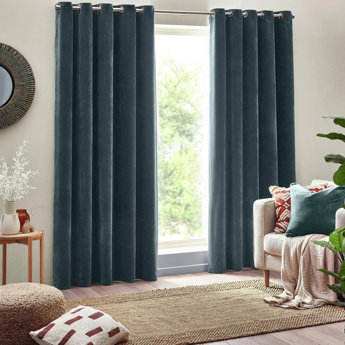 Habitat Chenille Blackout Eyelet Curtains - Green -117x137cm