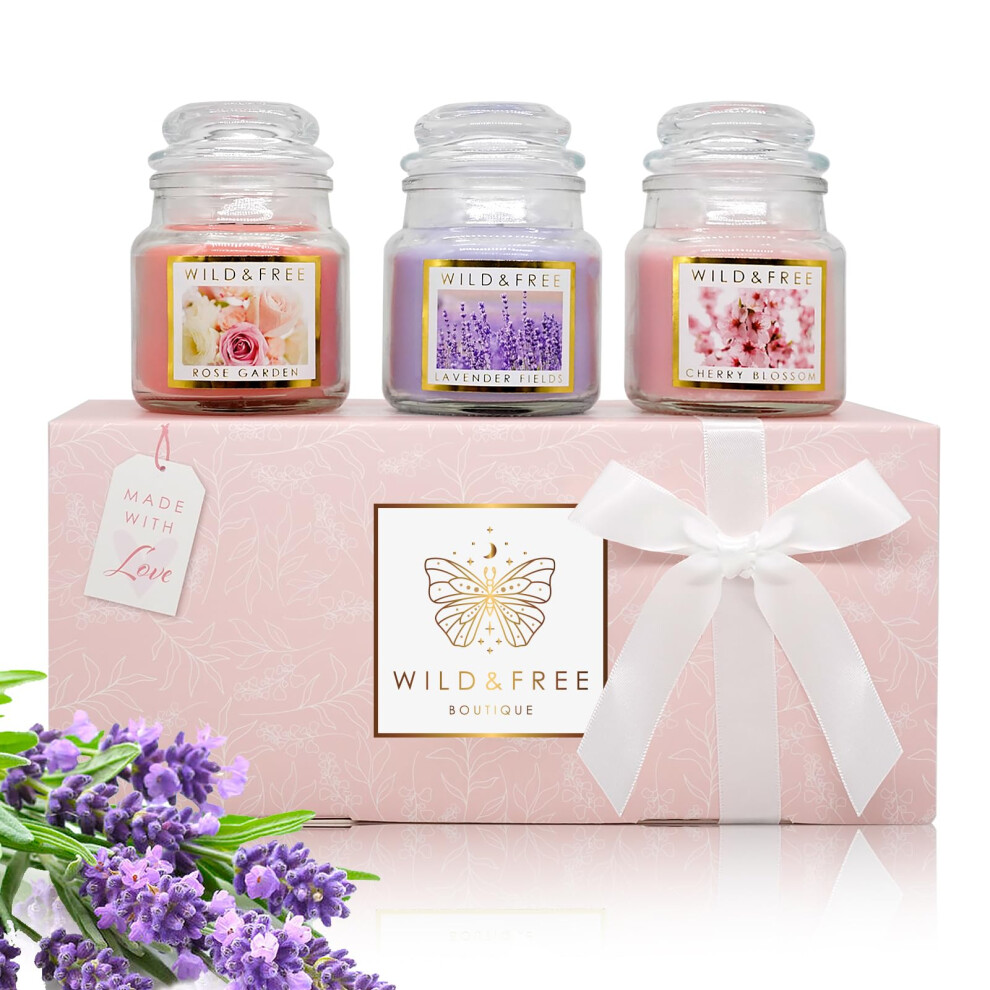 Candle Gifts for Women, Scented Candles Gifts for Her, Candle Gift Set, Birthday Gifts for Women, Christmas, Rose, Lavender, Cherry Blossom, Mum, Nan,
