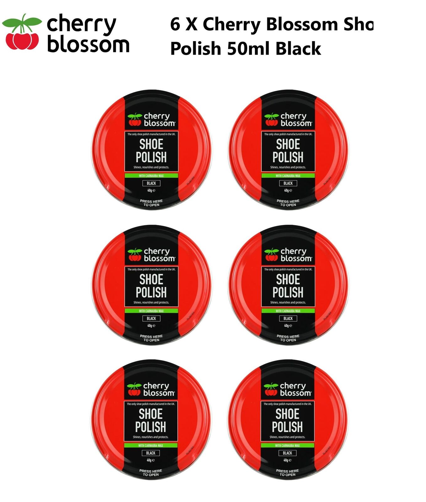 Cherry Blossom Traditional Shoe Polish With Carnauba Wax 40g Tin Black X 6