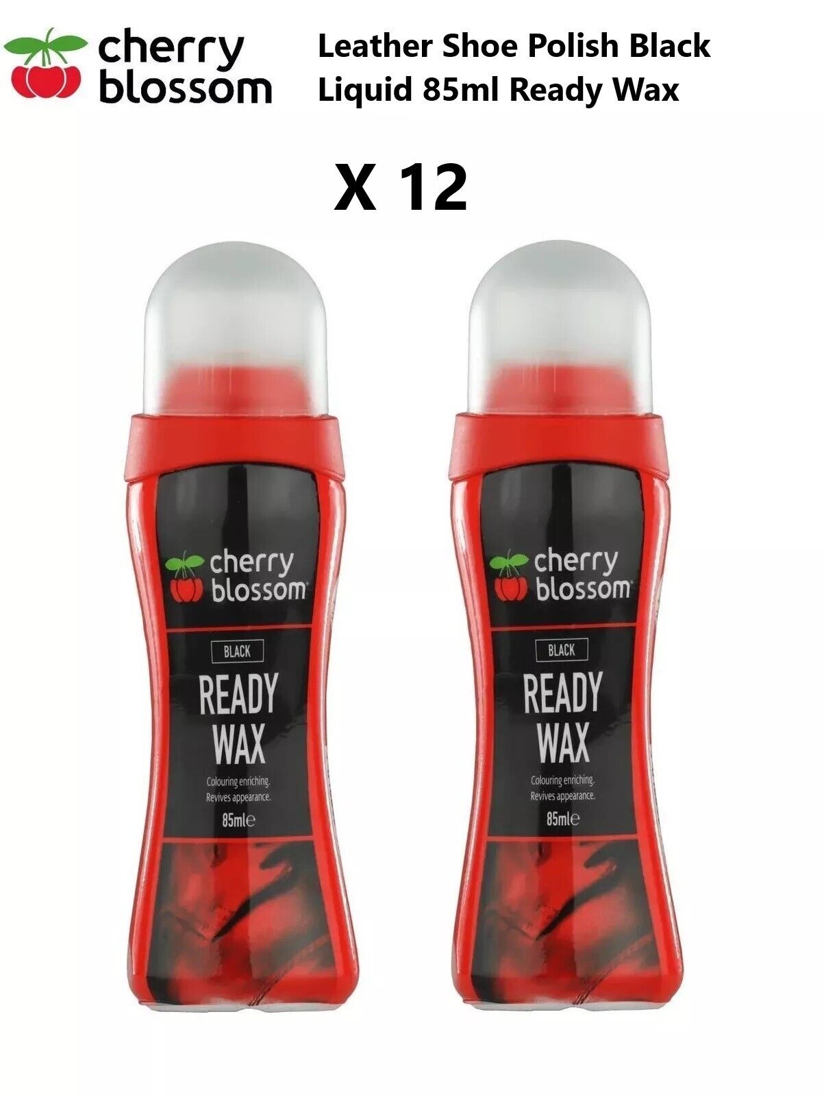 Cherry Blossom Leather Shoe Polish Black Liquid 85ml Ready Wax X 12