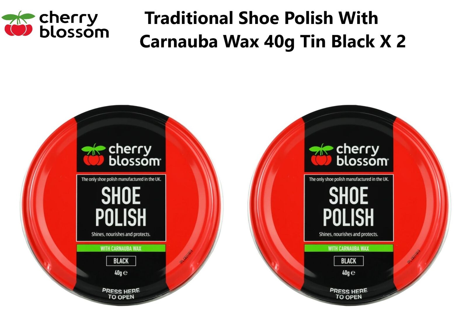 Cherry Blossom Traditional Shoe Polish With Carnauba Wax 40g Tin Black X 2