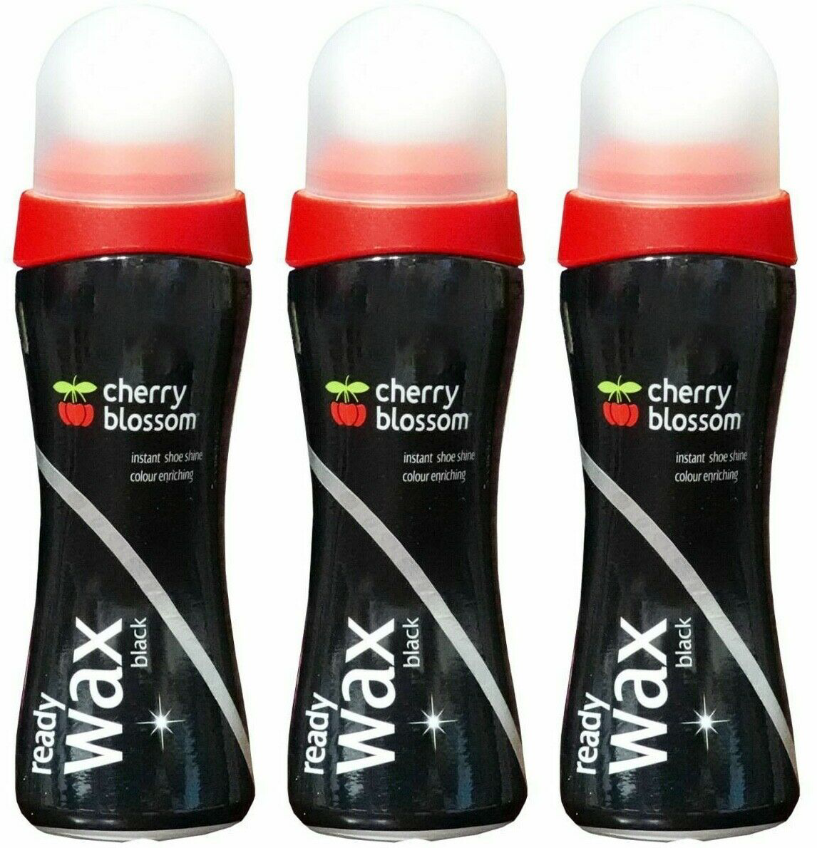 3x Cherry Blossom Instant Shoe Shine Polish Ready Wax Liquid 85ml - Black