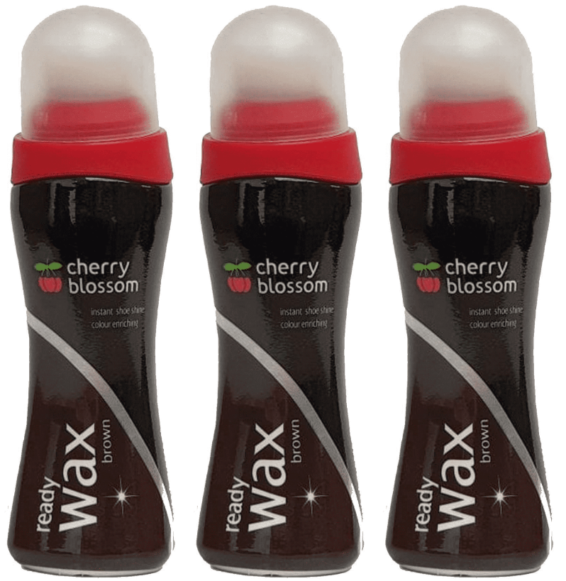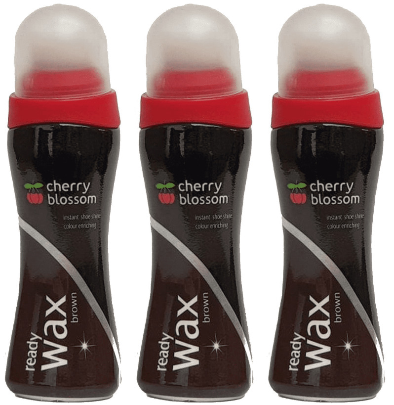 3x Cherry Blossom Instant Shoe Shine Polish Ready Wax Liquid 85ml - Brown