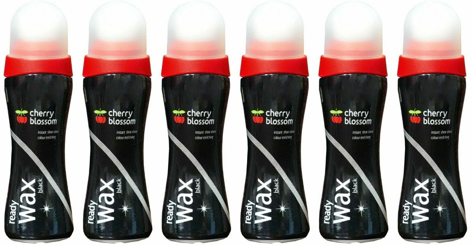 6x Cherry Blossom Instant Shoe Shine Polish Ready Wax Liquid 85ml - Black