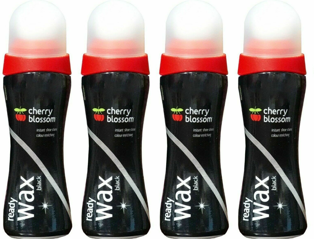 4x Cherry Blossom Instant Shoe Shine Polish Ready Wax Liquid 85ml - Black