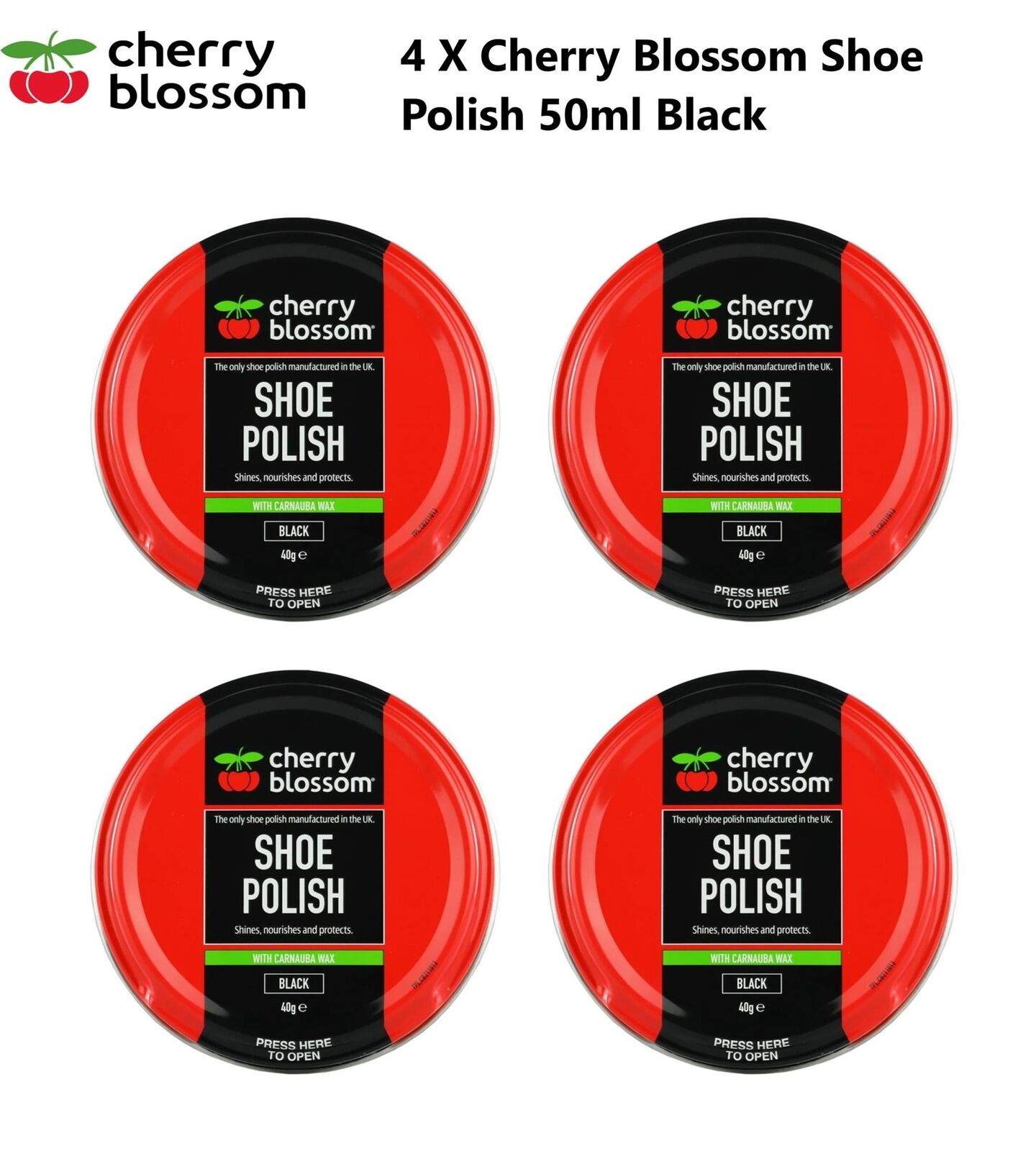 Cherry Blossom Traditional Shoe Polish With Carnauba Wax 40g Tin Black X 4