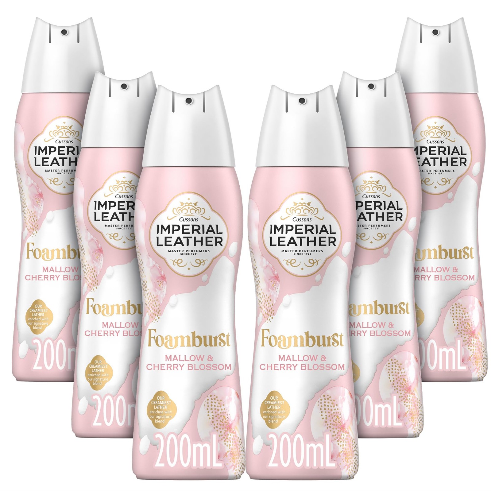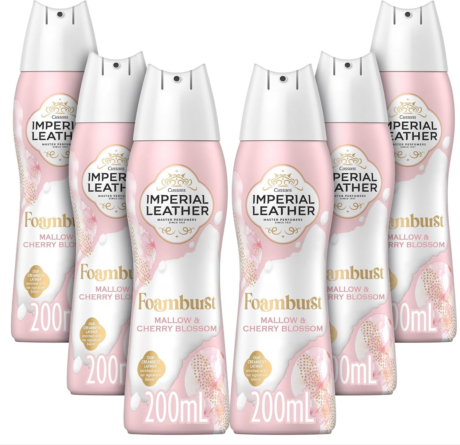 Imperial Leather Foamburst Pampering Shower Gel, Mallow & Cherry Blossom Body Wash, Luxurious Foam Lather, Gentle Skin Care, Bulk Buy, Pack of 6 x 200ml