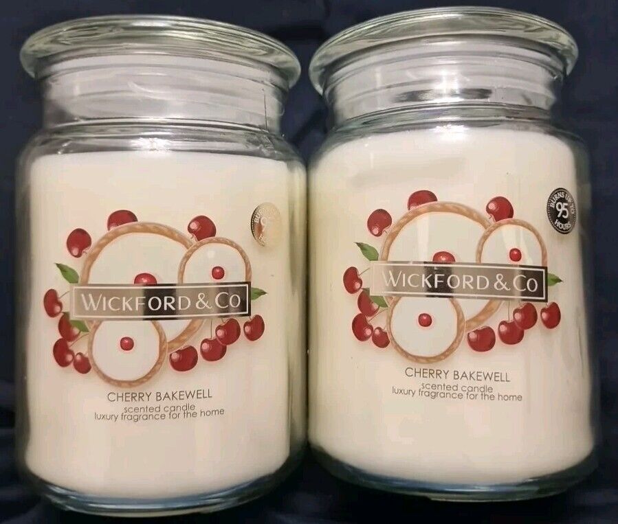 Wickford & Co Cherry Bakewell Scented Candle Large Glass Jar 18 Oz Packmof 2