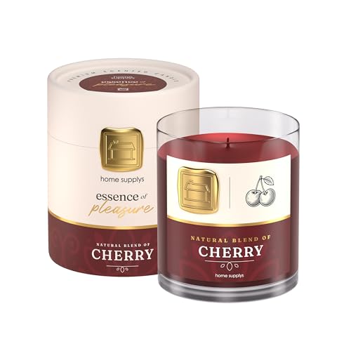 Large Cherry Candle – Candle Gift for Women & Men with Lid – (280g/60hr) Long Burn Time with Cherry, Cherry Blossom, Raspberry & Lily – Organic & Vegan Scented – Relaxation, Aromatherapy & Wellness