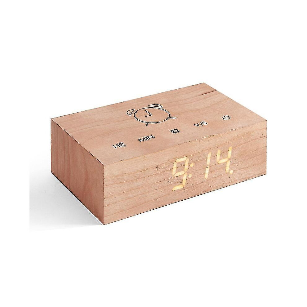 (Cherry) Flip Click Clock Led Alarm Clock Sound Activated With New Flip Technology, Rechargeable With Laser Engraved Touch Controls, Various Wood Fini