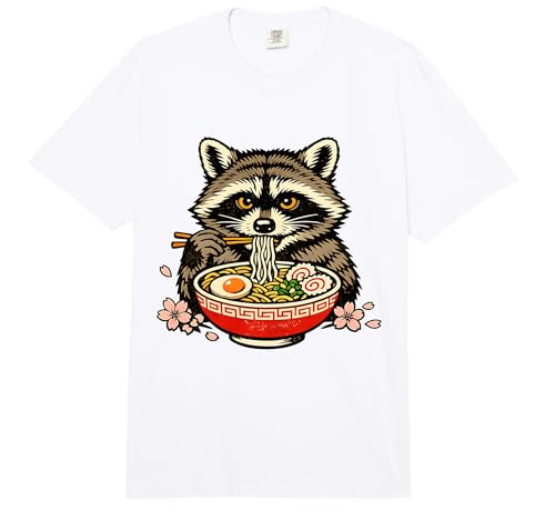 Raccoon Eating Ramen Noodles Japanese Cherry Blossom Comfort Colors Adult Heavyweight T-Shirt