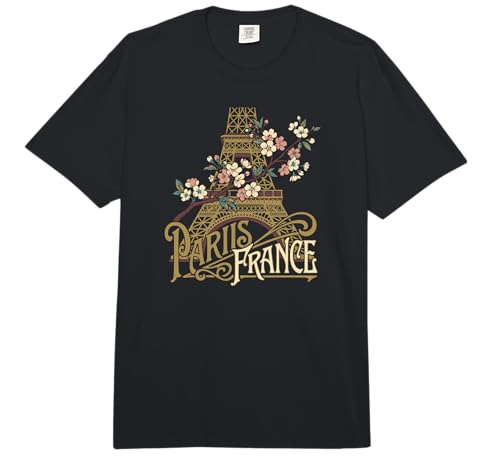 Vintage Paris France Eiffel Tower Cherry Blossoms Comfort Colors Adult Heavyweight T-Shirt
