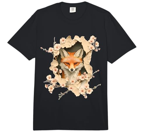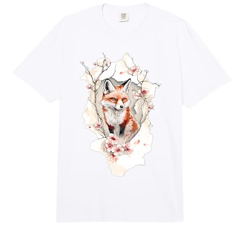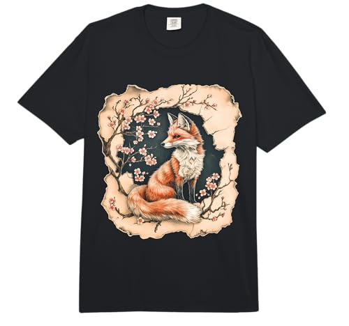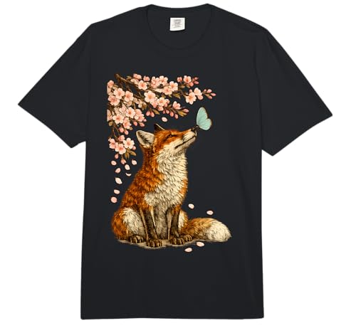 Fox Vintage Cherry Blossoms Fox Comfort Colors Adult Heavyweight T-Shirt