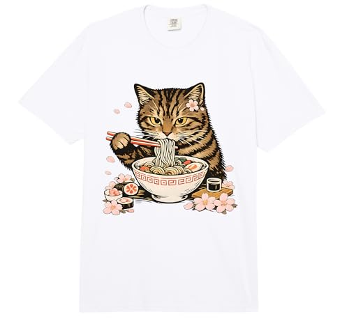 Cat Eating Ramen Noodles Cute Kawaii Japanese Cherry Blossom Comfort Colors Adult Heavyweight T-Shirt