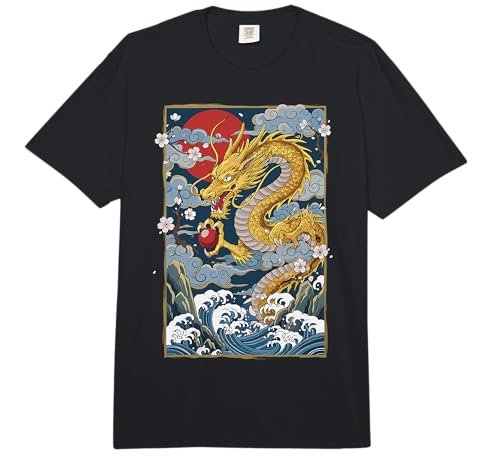 Japanese Dragon Art Cherry Blossom Waves Comfort Colors Adult Heavyweight T-Shirt