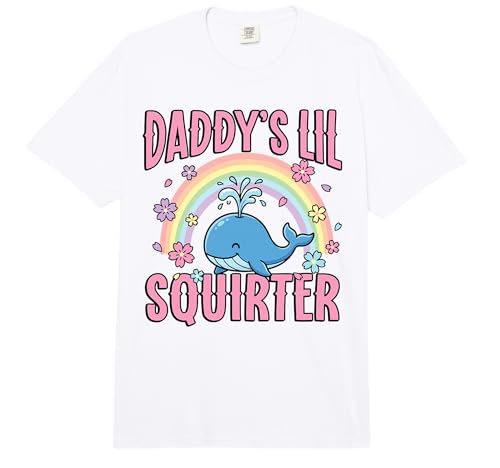 Daddy's Lil Squirter Cute Whale Rainbow Cherry Blossom Comfort Colors Adult Heavyweight T-Shirt