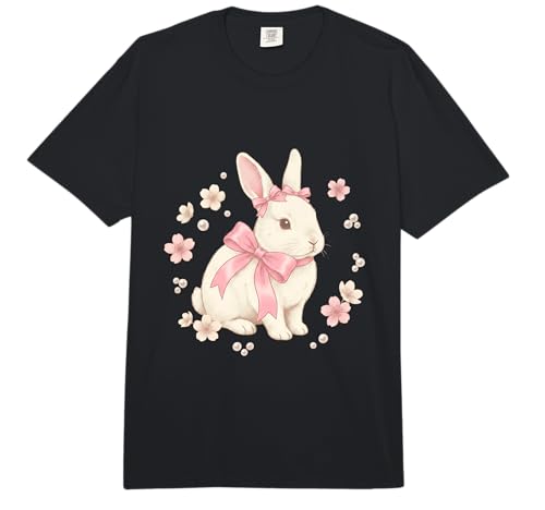 Cute Bunny Rabbit Pink Bow Sakura Cherry Blossom Easter Comfort Colors Adult Heavyweight T-Shirt