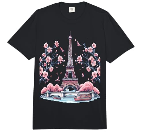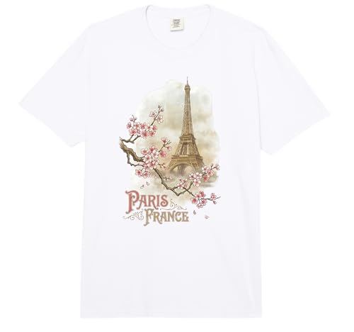 Paris France Eiffel Tower Cherry Blossoms Vintage Comfort Colors Adult Heavyweight T-Shirt