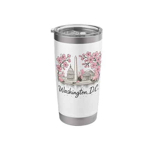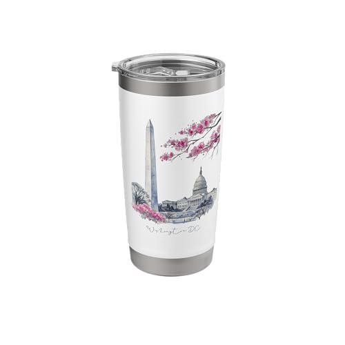 Washington DC Landmarks Cherry Blossoms Souvenir Stainless Steel Insulated Tumbler