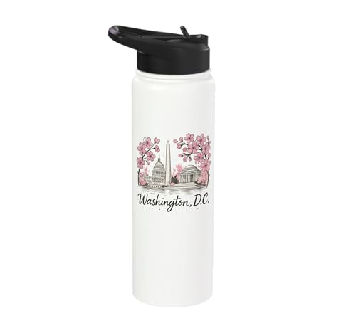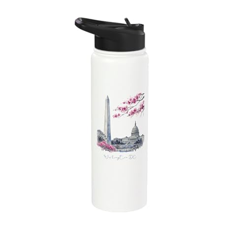Washington DC Landmarks Cherry Blossoms Souvenir Stainless Steel Insulated Water Bottle