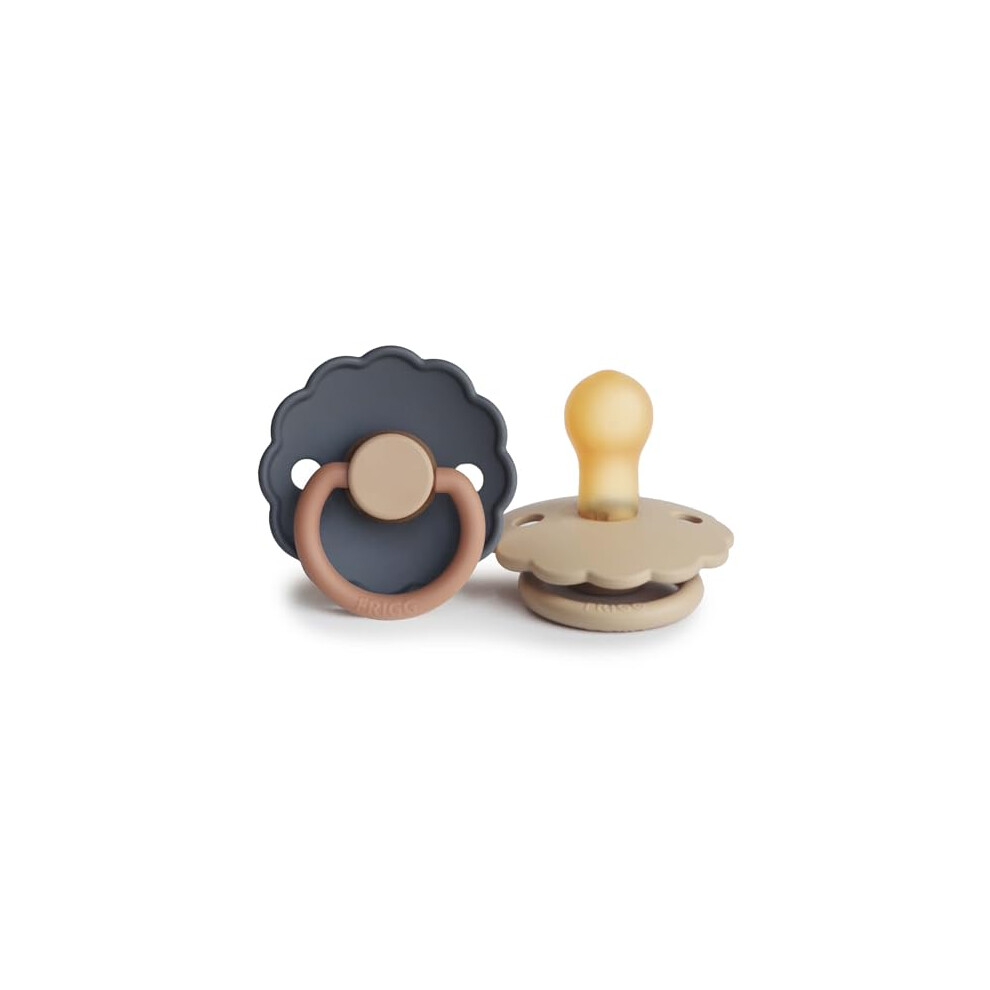 FRIGG Daisy Latex Pacifier Pack of 2 | Natural Rubber Soother Dummy | BPA-Free | Made in Denmark | Symmetrical Cherry Shaped Nipple (Biscuit/Cream, S