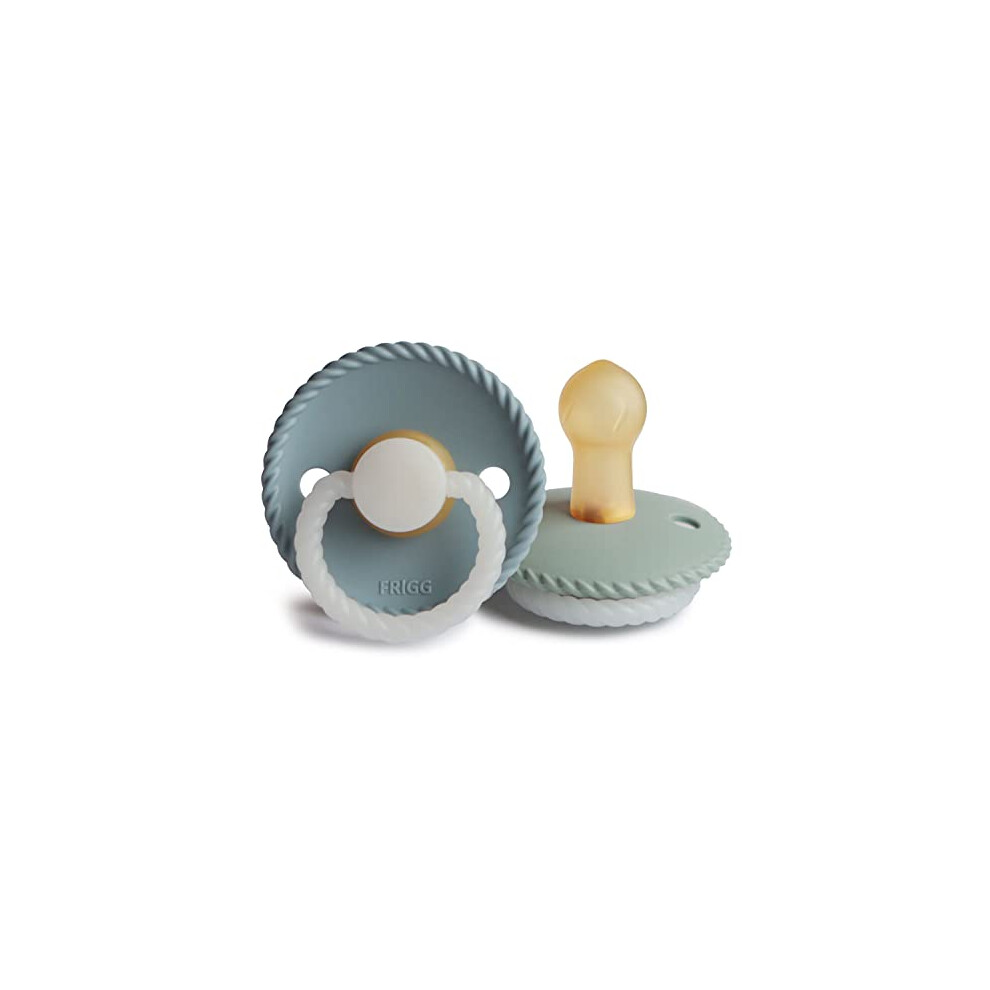 FRIGG Rope Night Latex Pacifier Pack of 2 | Natural Rubber Soother Dummy | Glow | BPA-Free | Made in Denmark | Symmetrical Cherry Shaped Nipple (Stone
