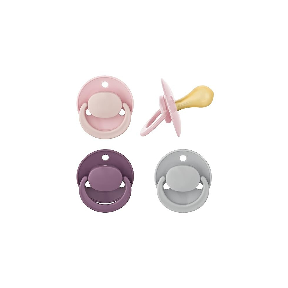 Round Latex Dummy for Babies from 0-24 Months - Set of 4 Cherry Dummies - Natural BPA Free Rubber Latex - Made in Germany - Pink & Grey