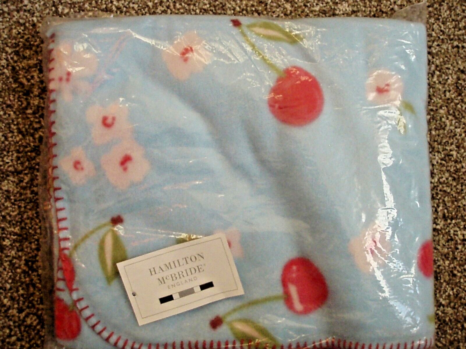 CHERRIES & FLOWERS Cherry Red Blue Soft Touch Fleece Throw / Blanket 49in x 59in