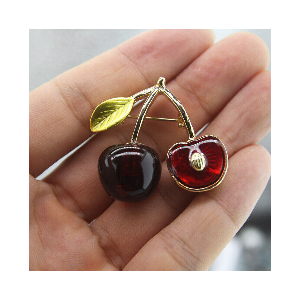 Art Deco Style Enamel Crystal Fruit Cherry Brooch Badge Pin Gift