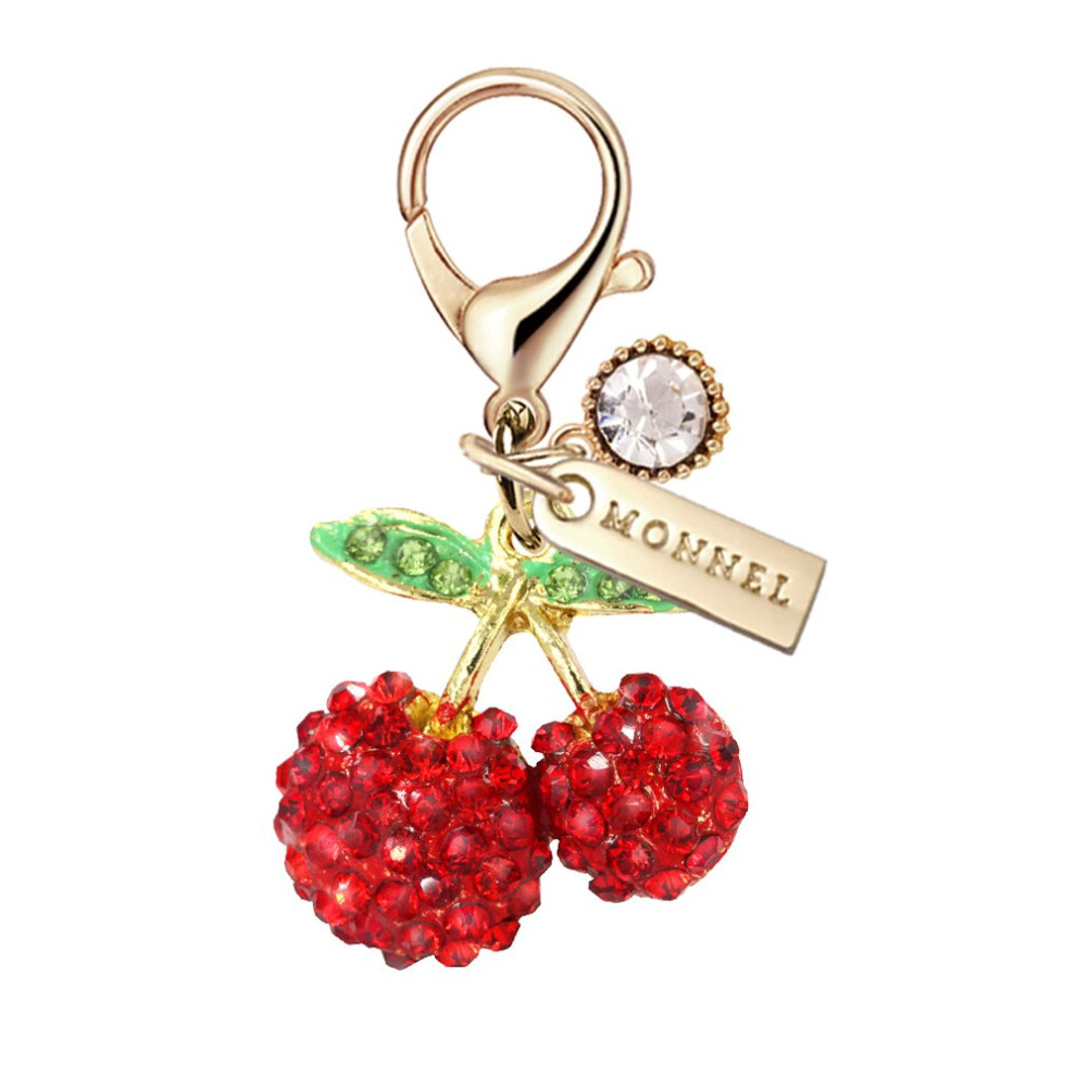 MC60 Crystal Cherry Lobster Clasp Charm Pendant with Pouch Bag (Red 1 piece)
