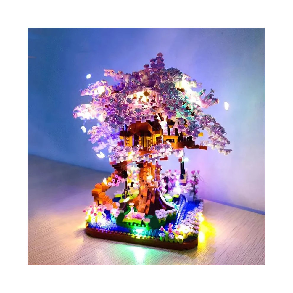 Mini Sakura Tree Building Blocks Set, Cherry Blossom Bricks with Light Gift Idea