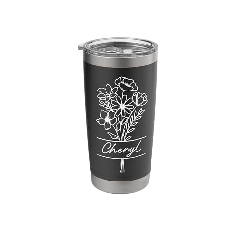 Flower Line Art Personalized Tumbler Floral Name Cheryl Stainless Steel Insulated Tumbler