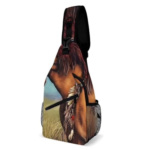 KWQDOZF Casual Sling Backpack, Backpacking, Ethnic Tribal Horse Art Shoulder Chest Crossbody Bag, Camera Case, Casual Carrying Tote Case Crossbody Travel Bag for Men Women