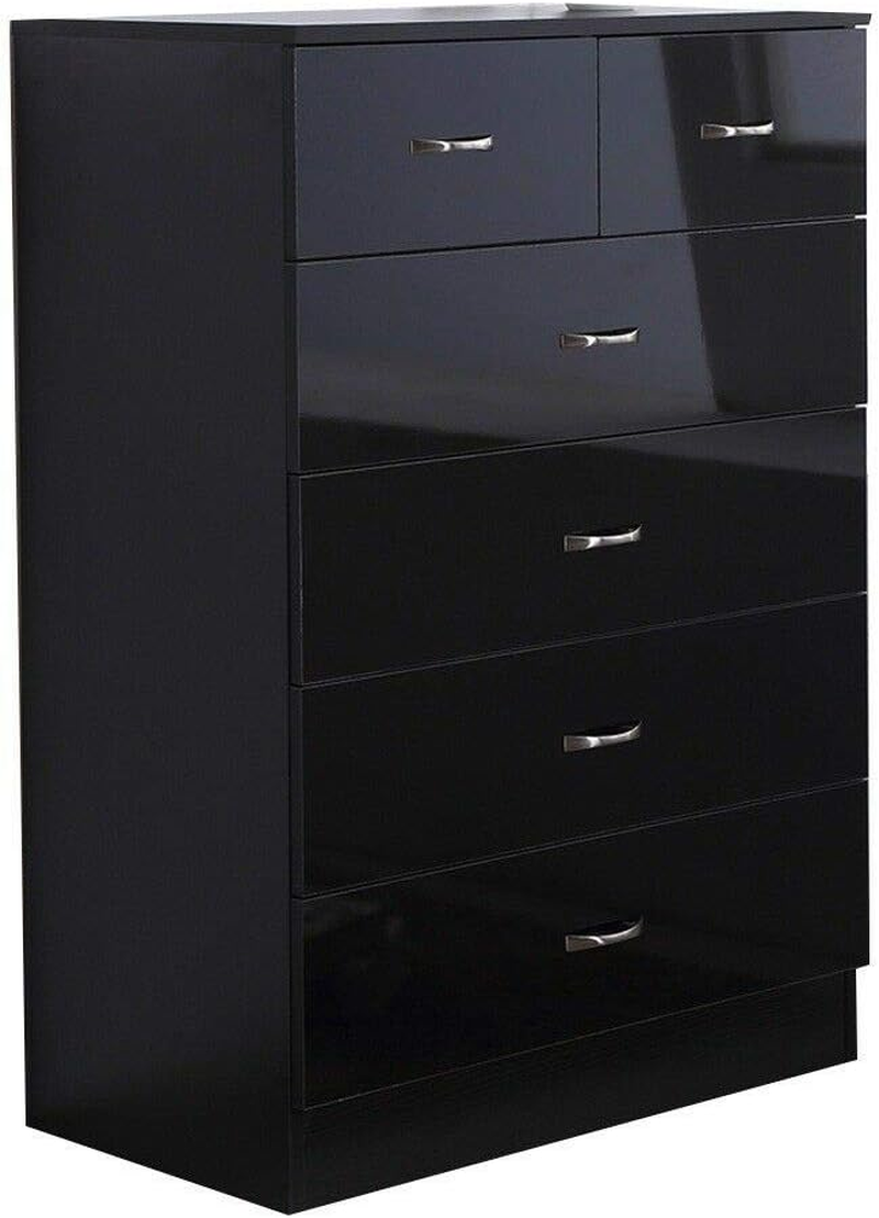 Modern 6 Drawer Chest High Black Gloss Bedroom Storage Furniture Large Deep Draw