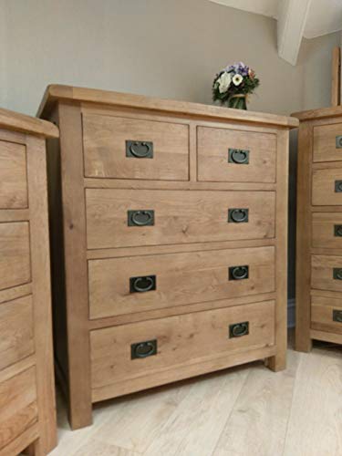 Zelah Oak 2 over 3 Chest of Drawers Tall Chest of Drawers Bedroom | Roseland Furniture Rustic Solid Wooden 5 Draw Cabinet for Bathroom, Hallway or Living Room | Fully Assembled