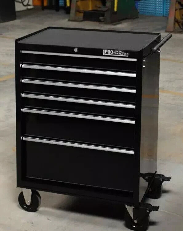 Hilka Tool Chest Trolley 6 draw black metal storage roll cabinet wheels box cab