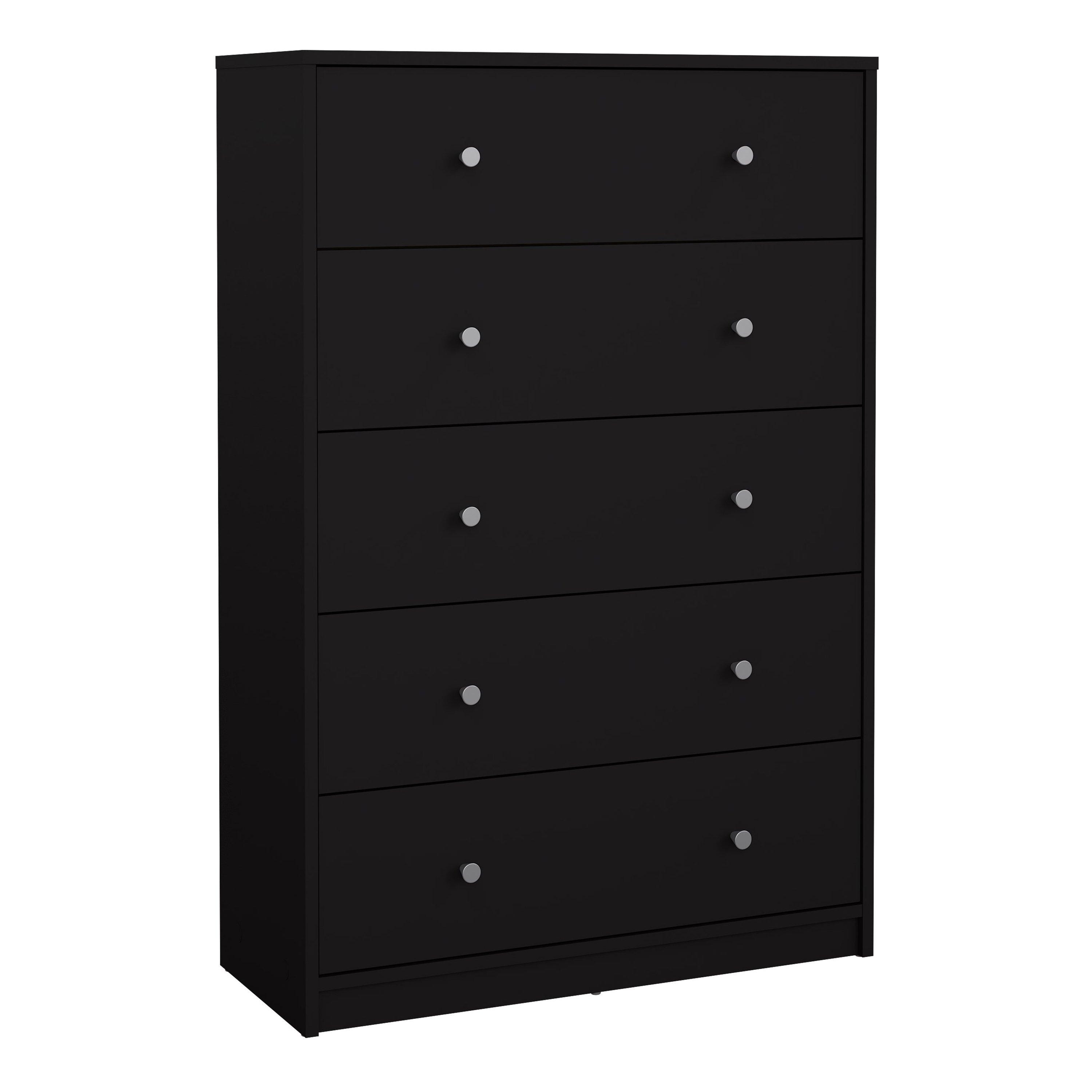 Home Treats Chest of Drawers - 5 Drawers Black Bedroom Wooden Furniture. Anti-Bowing Storage Organiser for Any Room (Black, 5 Drawer Tallboy)
