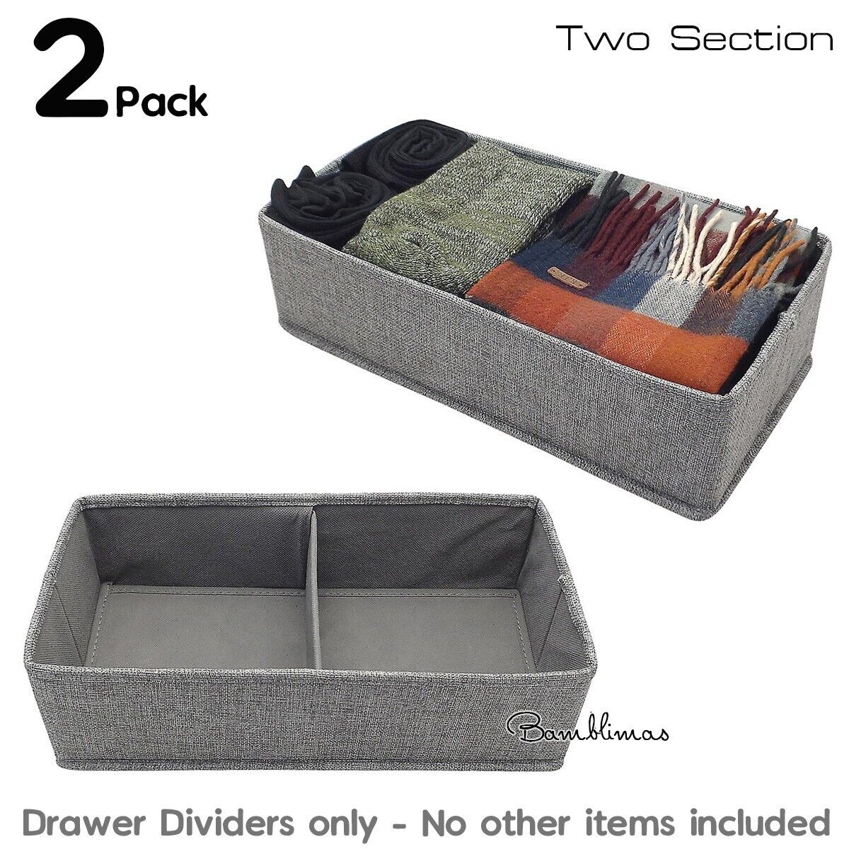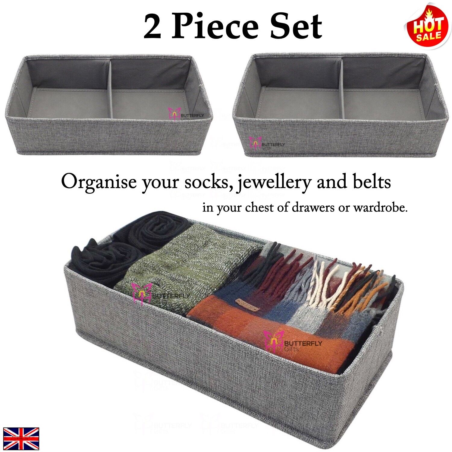 Set of 2 pcs, Grey 2 Section Drawer Divider Tidy Chest Draw Organiser Storage
