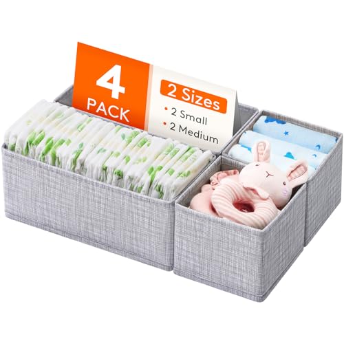 Lifewit 4 Pack Drawer Organiser for Baby Clothes, Collapisble Fabric Chest of Draw Dividers Nursery Closet, Dresser, Bedroom, Foldable Cube Boxes, Pants, Underwear Organization