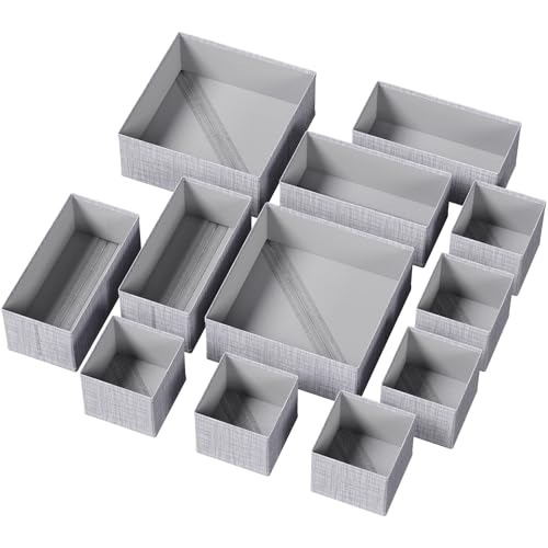 Lifewit 12 Pack Drawer Organiser,Collapisble Fabric Chest of Draw Dividers for Closet, Dresser, Nursery, Bedroom, Foldable Cube Boxes for Clothes, Pants, Underwear, Sock, Bras Organization, Light Grey